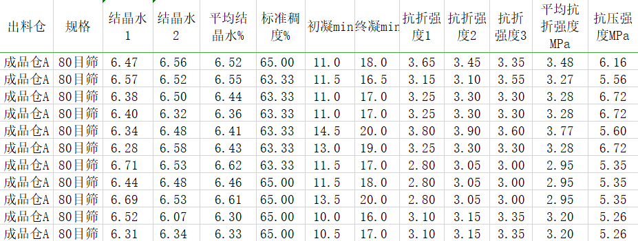 石膏粉出厂化验检测数据